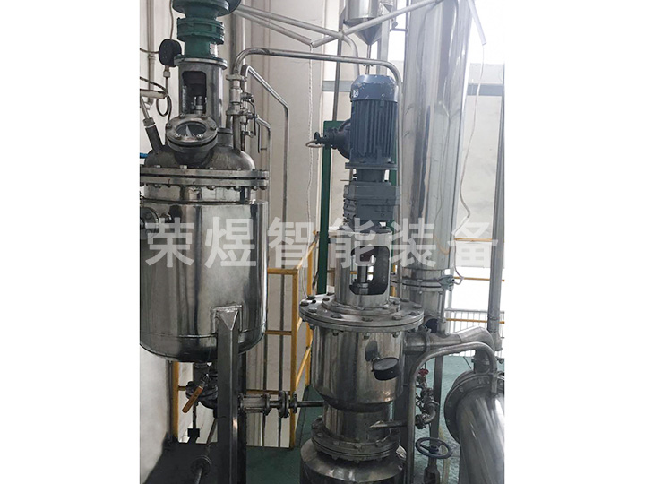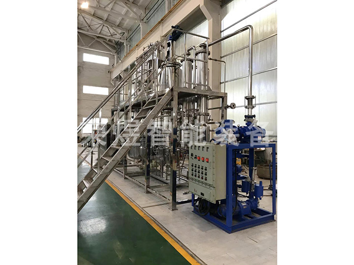 結(jié)構(gòu):本設(shè)備主要包括薄膜蒸發(fā)器、內(nèi)置冷凝器、二級冷凝器、原料罐、成品罐、低沸點(diǎn)罐、高沸點(diǎn)罐等部件組成,全部由不銹鋼制造。
